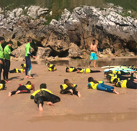 Disfruta y aprende, de la mano de nuestra plantilla de profesores, de una inmersión lingüística en inglés mientras surfeas con expertos monitores.